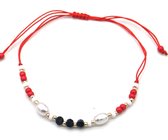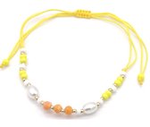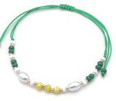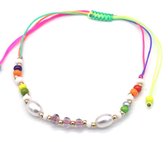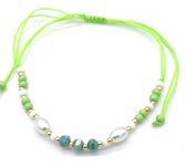 Un joli et doux bracelet composé d'un cordon coloré. Un certain nombre de perles et de perles artificielles y sont suspendues.