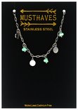 Un beau et élégant bracelet en acier inoxydable avec quelques petites pièces et perles qui y sont suspendues. Le bracelet lui-même est composé d'élégants maillons d'ancre.