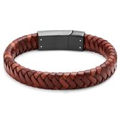 Malinsi Bracelet Homme - Pierre Onyx Cuir Cordons Zwart et Acier Inoxydable - Bracelet Homme 20 + 2 cm Extension