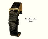 Bracelet montre-20mm-noir-croco-imprimé lézard-cuir véritable-boucle plate-or-20 mm