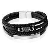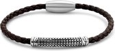 Bracelet pour homme Mendes Jewelry - Cuir Zwart élégant avec accents argentés - 21 cm