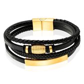 Ce bracelet pour homme de Mendes Jewelry rayonne à la fois de force et de raffinement. Fabriqué en acier inoxydable de haute qualité et en cuir noir véritable, ce bracelet offre durabilité et style. L'élément coulissant central en acier inoxydable, décoré de motifs élégants et fini avec un éclat argenté, attire l'attention et crée un accent luxueux. Des charms accrochés des deux côtés de l'élément coulissant donnent au bracelet une dimension supplémentaire. Avec 4 bandes, 1 tressée et 3 plates, ce bracelet est une expression de polyvalence et d'ajustement parfait. Un accessoire indispensable pour l'homme moderne à la recherche d'un ajout intemporel et élégant à son style.>