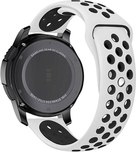 Bracelet Strap-it Smartwatch 20mm - bracelet sport adapté pour Samsung Galaxy Watch 42mm / Active / Active2 - 40 & 44mm / Galaxy Watch 3 41mm / Galaxy Watch 4 - Classic - Amazfit GTS / GTS 2 / 3 / Bip - blanc/noir