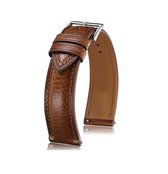 Bracelet de montre-22mm-cuir véritable-marron-fourré-croco-boucle couleur or souple-22 mm