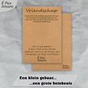 Ces bracelets d'amitié sont accompagnés d'une élégante carte cadeau, ce qui les rend encore plus spéciaux à offrir et à recevoir. Il existe un choix de différents types de cartes, chacune comportant un message unique et personnel qui reflète parfaitement le lien qui vous unit à votre meilleur ami. Que vous choisissiez un texte joyeux, doux ou inspirant, ces cartes ajoutent une touche personnelle supplémentaire au cadeau et rendent le moment d'offrir encore plus spécial.