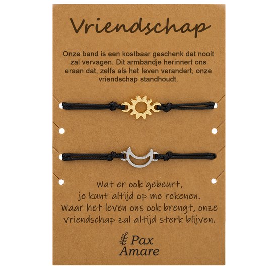Bracelets d'amitié pour 2 avec Soleil & Lune - Or & Argent - Élastique réglable - Cadeau d'amitié - Pax Amare