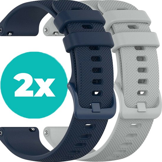 Bracelets pour montres connectées - Lot de 2 - Bracelet en Siliconen - Bleu foncé - Grijs - Bracelet 18 mm - Lot de 2 - Convient pour Vivoactive 4s / Garmin Venu 2s / Garmin Vivomove 3s