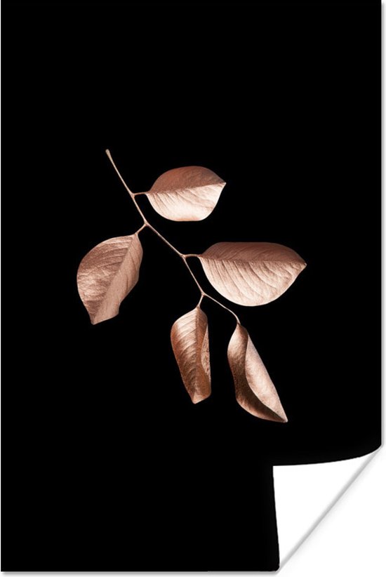 Branche à feuilles rose or sur fond noir 80x120 cm
