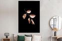 Branche aux feuilles rose or sur fond noir 120x180 cm XXL / Groot format!