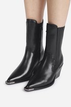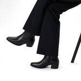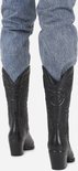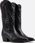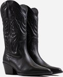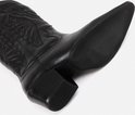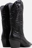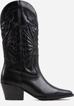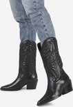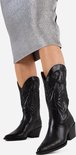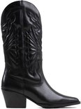 Jukeson Western Bottes femmes Le Jukeson de la dernière collection Bronx. Ces boots sont de couleur noire et ont un look cowboy. Les bottes présentent une broderie élégante, une tige mi-haute de 30 cm, un nez pointu et une hauteur de talon de 7 cm. Les santiags sont 100% cuir à l'intérieur et à l'extérieur et sont parfaites à porter avec une robe ou un jean skinny !