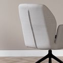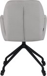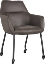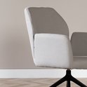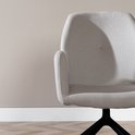 La chaise de salle à manger Runa est une chaise confortable au design scandinave. La chaise est produite de manière durable. Le tissu est composé à 100% de bouteilles en plastique recyclées. Parce que la chaise est équipée de roulettes, cette chaise est mobile et facile à déplacer. La chaise a un dossier haut associé à des accoudoirs. Cela vous donne envie de rester assis longtemps dans ce fauteuil confortable.