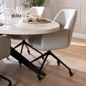 La chaise de salle à manger scandinave Runa est une chaise à roulettes. Cela vous permet de déplacer facilement la chaise, mais aussi vous-même lorsque vous êtes assis dans la chaise. Les roues de patin moyennement dures rendent la chaise très adaptée à différents sols sans laisser de traces. De cette façon, vous pouvez placer cette chaise sur n'importe quel sol en toute confiance. De plus, ces roues font peu ou pas de bruit lorsque vous roulez sur le sol. Cela contraste avec les roues plus dures.