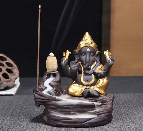 Brûle-encens / porte-encens à refoulement statue de Ganesha cascade 10.5 X10.5X7CM BRUN OR