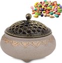 Brûleur d'encens - Porte-encens en céramique avec couvercle - Comprend 50 cônes d'encens - Décoration chinoise