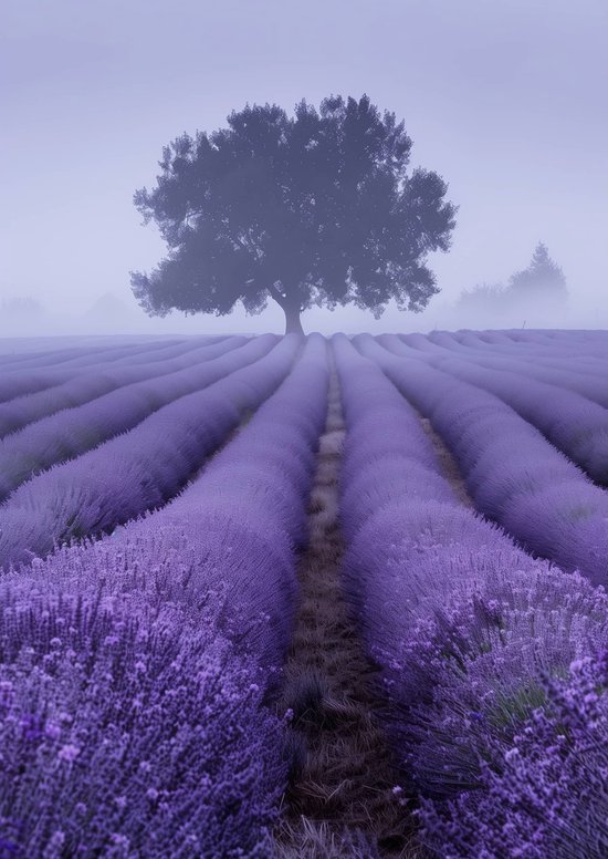 Brume de Lavande Poster | Lavande Poster | Brouillard Poster | Affiche Nature | Affiche colorée | Affiche rustique | 61x91cm | PVD | Décoration murale | Affiche murale | Convient pour l'encadrement
