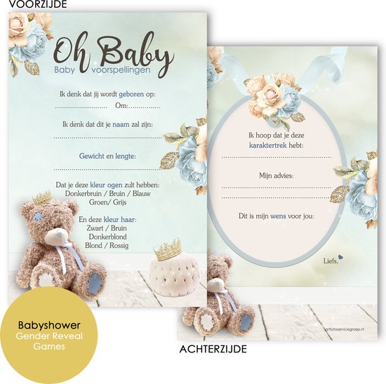 BSG504 BLEU - Cartes à remplir pour baby shower (20 pièces) - Oh Bébé - Cartes à remplir Bébé - Jeux pour baby shower - Cartes pour bébé - Prédictions pour bébé - Baby shower - Jeux pour baby shower - Gender Reveal