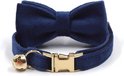 Buddy box - Collier chat - Velours - Blauw - Goud - Noeud papillon - Chats - Chats - Chat - Vêtement chat - Cloche