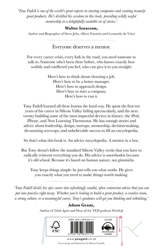 THE NEW YORK TIMES BESTSELLER. An unorthodox guide to making things worth making, from 'the father of the iPod and iPhone' and the creator of Nest. Everyone deserves a mentor. For every career crisis, every fork in the road, you need someone to talk to. Someone who's been there before, who knows exactly how wobbly and conflicted you feel, who can give it to you straight: Here's how to think about choosing a job. Here's how to be a better manager. Here's how to approach design. Here's how to start a company. Here's how to run it. Tony Fadell learned all these lessons the hard way. He spent the first 10 years of his career in Silicon Valley failing spectacularly, and the next 20 building some of the most impactful devices in history - the iPod, iPhone, and Nest Learning Thermostat. He has enough stories and advice about leadership, design, startups, mentorship, decision making, devastating screwups, and unbelievable success to fill an encyclopedia. So that's what this book is. An advice encyclopedia. A mentor in a box. But Tony's doesn't follow the standard Silicon Valley credo that you have to radically reinvent everything you do. His advice is unorthodox because it's old school. Because it's based on human nature, not gimmicks. Tony keeps things simple: he just tells you what works. He gives you exactly what you need to make things worth making. PRAISE FOR BUILD This is the most fun - and the most fascinating - memoir of curiosity and invention that I've ever read.' Malcolm Gladwell, Host of the Revisionist History podcast. Author of Outliers and Talking to Strangers. Whether you're looking to build a great product, a creative team, a strong culture, or a meaningful career, Tony's guidance will get you thinking and rethinking.' Adam Grant, Author of Think Again & Host of the TED podcast WorkLife