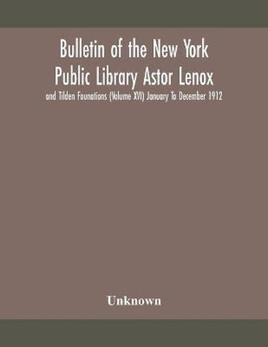 Bulletin Of The New York Public Library Astor Lenox And Tilden Founations (Volume Xvi) January To December 1912