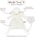 Une peluche douce et douce de Bunnies By the Bay! Les bras et les jambes noués sont faciles à saisir et idéaux pour sucer. Détachez le nœud et vous pouvez attacher une tétine au chiffon. Cela signifie que votre enfant a toujours la tétine à portée de main.