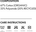 - 67% Katoen (biologique), 33% Polyamide (20% rec.)