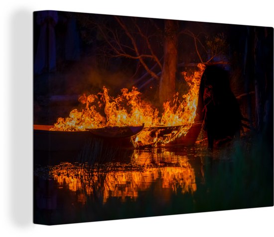 Burning Viking ship 120x80 cm - Tirage photo sur toile (Décoration murale salon / chambre)