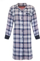 By Louise Chemise de Nuit Pyjama Femme Longue Flanelle à Carreaux Grijs/Rose - Taille L