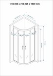 Dimensions: 785-805 x 785-805 x 1900 mm