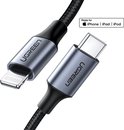 Câble Lightning UGREEN USB C Câble de chargeur en nylon PD certifié MFi pour iPhone 12/12 Mini/12 Pro/12 Pro Max/SE/11/11 Pro/X/XR/ XS MAX/8/8 Plus, etc. (1M, Zwart)