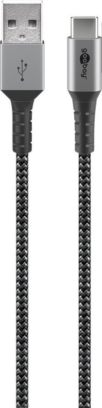 Câble textile Goobay USB-C™ vers USB-A avec fiches métalliques (Gris sidéral / Argent) 1 m