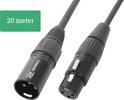 Câble de signal XLR (M - F) symétrique professionnel de haute qualité de 20 mètres PD Connex. Ce câble de signal flexible est équipé de connecteurs XLR métalliques de haute qualité et garantit une transmission de signal fiable et sans problème. Equipé d'attache de câble.