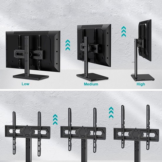 Joli support avec base lourde pour que le téléviseur soit stable. Les instructions sont en images, à mon avis, elles auraient pu utiliser du texte, mais elles sont faciles à mettre en place. Zitten plusieurs types de vis, etc. inclus afin que vous puissiez y placer presque n'importe quel téléviseur. Dans mon cas, un Sony Bravia