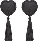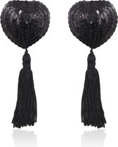 Cache tétons | Stickers mamelon coeur noir avec pompons | Brosses à tétons burlesques