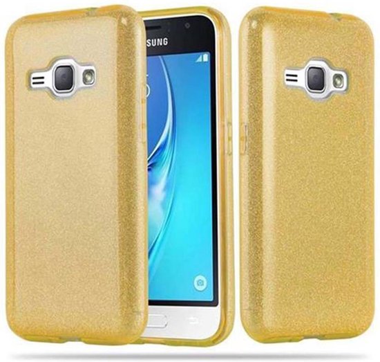 Cadorabo Coque pour Samsung Galaxy J1 2016 en STAR FABRIC GOLD - Housse de protection en silicone TPU au design pailleté