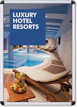 Faites la publicité de vos produits ou de votre marque sur l'élégant et durable Click Frame Slim de 20 mm. un cadre clic en aluminium de haute qualité avec une largeur de profil de 20 mm. Changez votre affiche publicitaire facilement et rapidement sans retirer le cadre du mur, grâce à la construction du cadre clic. Choisissez entre des coins droits ou arrondis. une solution d'affichage parfaite pour les petites tailles d'affiches allant de A5 à 70 x 100 cm. Perfect pour fournir des informations ou de la publicité dans l'industrie hôtelière, les magasins et les espaces publics ou comme décoration murale dans la décoration intérieure.