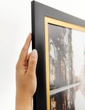 Un cadre de 50x70 cm en or. Le cadre est livré avec un verre antireflet et un dos, de sorte qu'il peut être monté sur le mur tout de suite. Ce cadre peut être utilisé comme cadre d'échange, les photos et affiches peuvent être facilement changées. Ruby est une monture noire moderne et élégante avec de beaux détails dorés dans la monture. Le cadre est fait de bois de la meilleure qualité. Ruby est le cadre parfait pour toutes vos superbes photos.