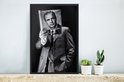 Vous aimez les vieux films ? Alors ce poster encadré est voor jou! L'affiche représente un homme en costume. Il brandit une photo de l'acteur de cinéma Marlon Brando.