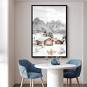 Cadre photo avec affiche 80x120 cm - Paysage d'hiver - Photo dans cadre - Décoration murale rurale - Décoration neige - Affiche murale cadre photo - Posters dans cadres photo - Système d'accrochage cadre en bois - Cadre photo - cadre affiche bois
