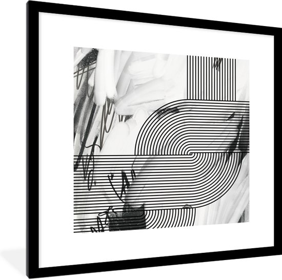 Cadre photo avec affiche - Abstrait - Rayures - Zwart - Wit - 40x40 cm - Cadre pour affiche