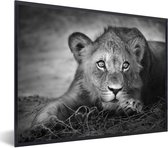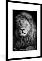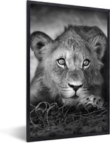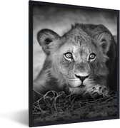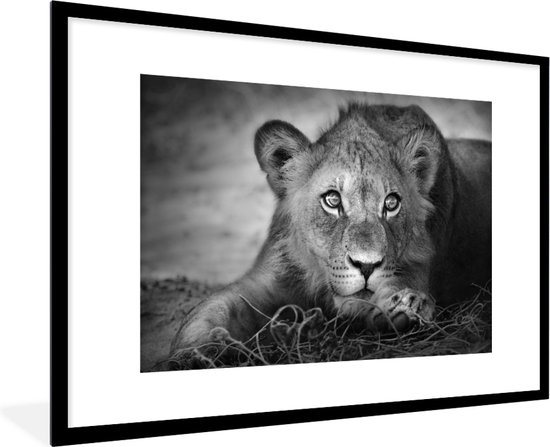 Cadre photo avec affiche - Animaux sauvages - Lion - Nature - Zwart - Wit - 90x60 cm - Cadre pour affiche