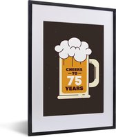 Cadre photo avec affiche - Anniversaire - 75 anniversaire - Verre à bière - 60x40 cm - Cadre pour affiche