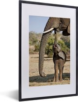 Cadre photo avec affiche - Bébé éléphant communique avec sa mère - 40x60 cm - Cadre pour affiche