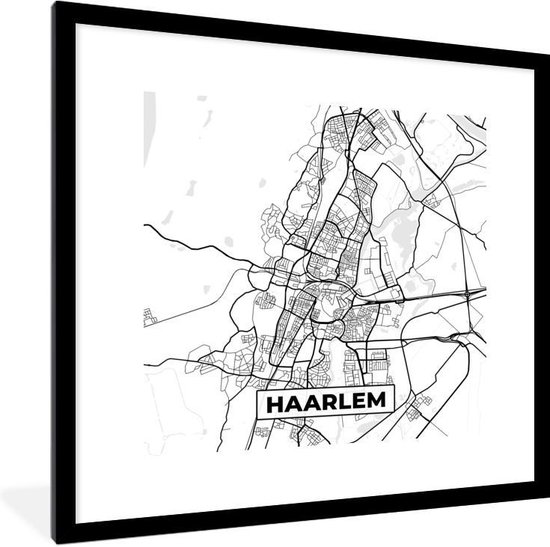 Cadre photo avec affiche - Carte - Haarlem - Zwart - Wit - 40x40 cm - Cadre pour affiche