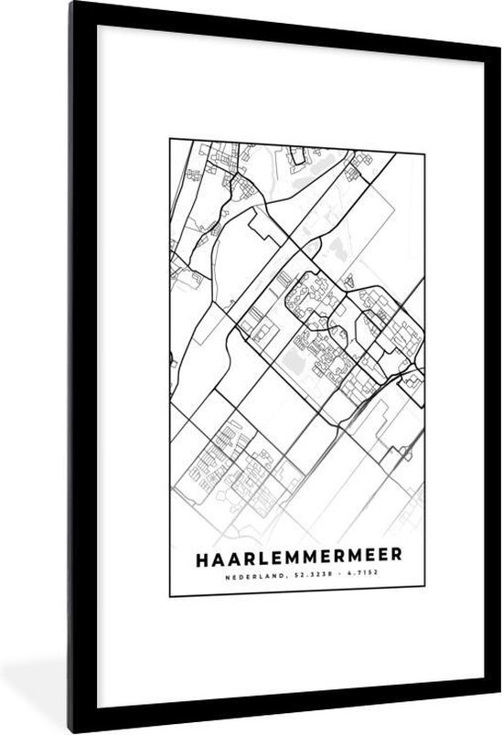 Cadre photo avec affiche - Carte - Haarlemmermeer - Zwart - Wit - 80x120 cm - Cadre pour affiche