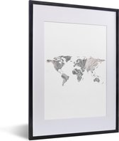 Cadre photo avec affiche - Carte - Monde - Peinture - Marbre - 40x60 cm - Cadre pour affiche