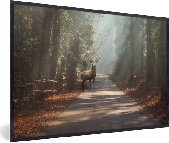 Cadre photo avec affiche - Cerf - Forêt - Rayons de soleil - 30x20 cm - Cadre pour affiche