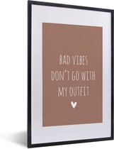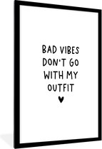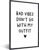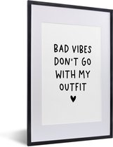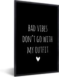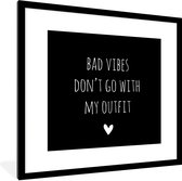 Cadre photo avec affiche - Citation anglaise "Bain vibes don't go with my outfit" avec un cœur sur fond noir - 60x90 cm - Cadre pour affiche