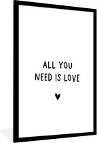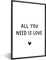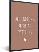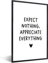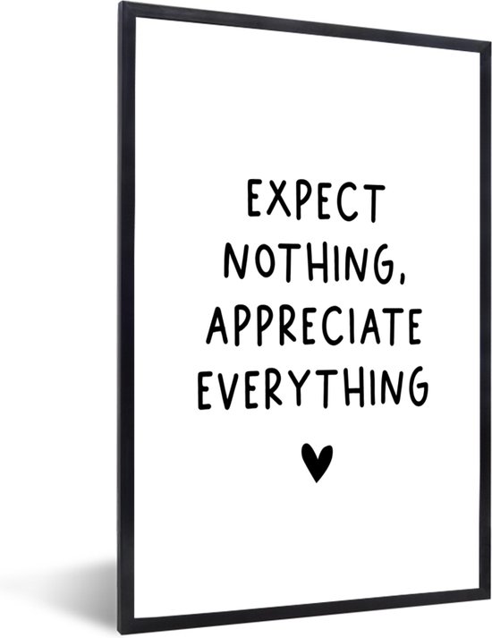 Cadre photo avec affiche - Citation anglaise "N'attendez rien, appréciez tout" avec un cœur sur fond blanc - 60x90 cm - Cadre pour affiche