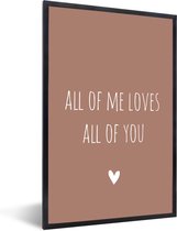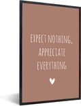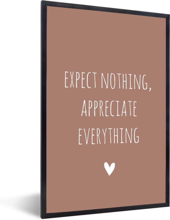 Cadre photo avec affiche - Citation en anglais N'attendez rien, appréciez tout avec un cœur sur fond marron - 60x90 cm - Cadre pour affiche