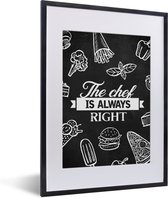 Cadre photo avec affiche - Citations - Cuisine - Coeur - Kok _ Always embrasser le cuisinier - Texte - 30x20 cm - Cadre pour affiche